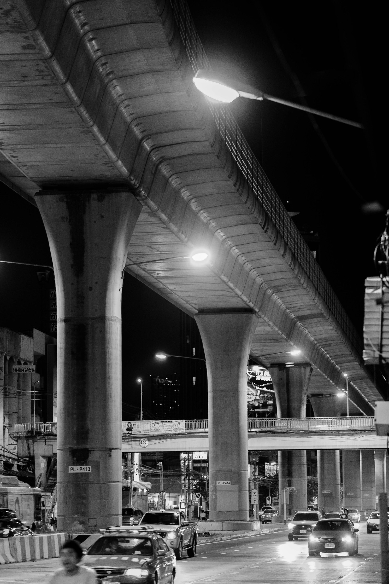 I have never forgotten either the visuals of that walk nor the feelings it evoked. I still find myself fascinated with the structures of the LRT system. That “nighttime overpass” is archetypal SkyTrain, in this case the Purple Line that serves Nonthaburi.